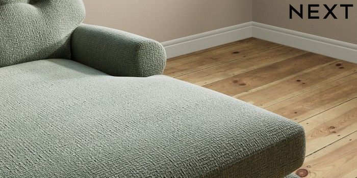 7.2.10 Erin Buttoned Back Deep Relaxed Sit Medium Sofa Chaise - Right Hand Chunky Texture Mid Forest Green High Classic Turned Chrome Castor - Mid | Made Click here to use our website with more accessibility support, for example screen readers