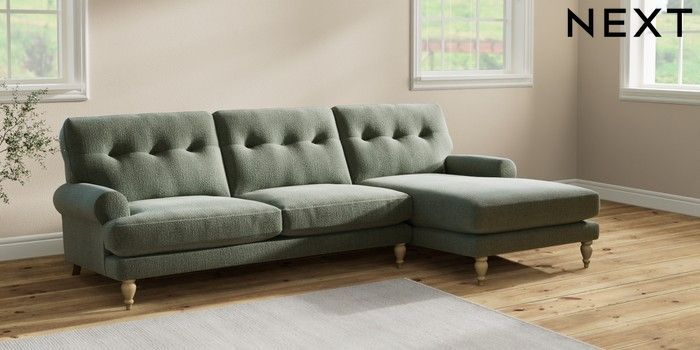 7.2.10 Erin Buttoned Back Deep Relaxed Sit Medium Sofa Chaise - Right Hand Chunky Texture Mid Forest Green High Classic Turned - Light | Made Click here to use our website with more accessibility support, for example screen readers