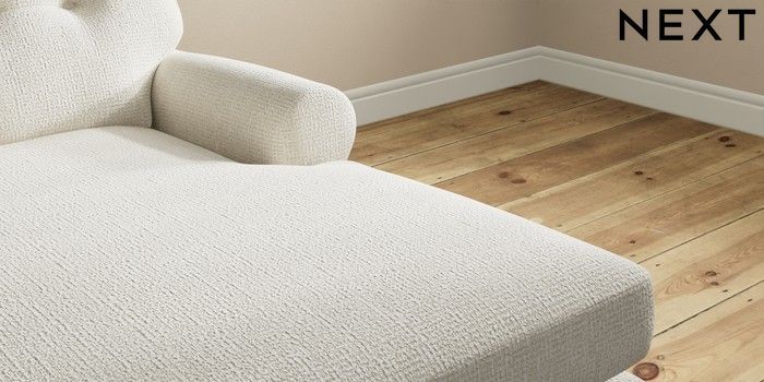 7.2.10 Erin Buttoned Back Deep Relaxed Sit Medium Sofa Chaise - Right Hand Chunky Texture Oyster High Classic Turned Chrome Castor - Light | Made Click here to use our website with more accessibility support, for example screen readers
