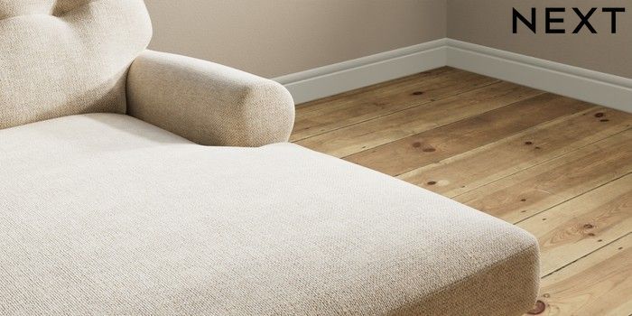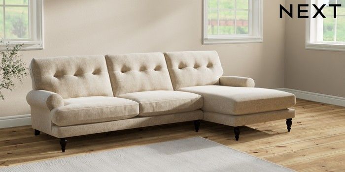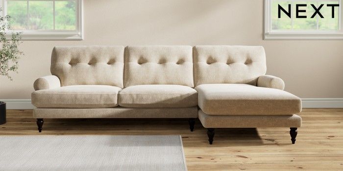 7.2.10 Erin Buttoned Back Deep Relaxed Sit Medium Sofa Chaise - Right Hand Chunky Weave Cream High Classic Turned - Dark | Made Click here to use our website with more accessibility support, for example screen readers