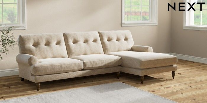 7.2.10 Erin Buttoned Back Deep Relaxed Sit Medium Sofa Chaise - Right Hand Chunky Weave Cream High Classic Turned - Mid | Made Click here to use our website with more accessibility support, for example screen readers