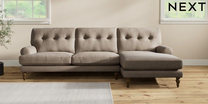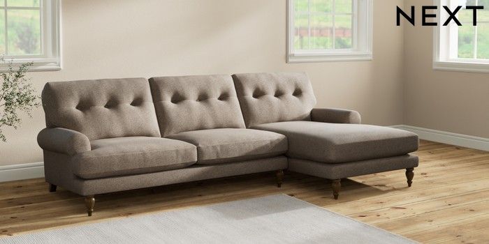 7.2.10 Erin Buttoned Back Deep Relaxed Sit Medium Sofa Chaise - Right Hand Chunky Weave Dark Natural High Classic Turned - Mid | Made Click here to use our website with more accessibility support, for example screen readers