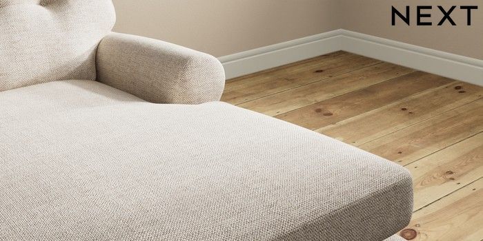 7.2.10 Erin Buttoned Back Deep Relaxed Sit Medium Sofa Chaise - Right Hand Chunky Weave Mid Natural High Classic Turned Brass Castor - Light | Made Click here to use our website with more accessibility support, for example screen readers