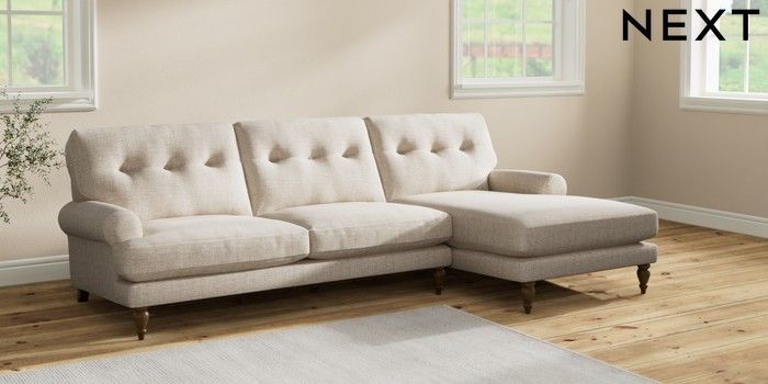 7.2.10 Erin Buttoned Back Deep Relaxed Sit Medium Sofa Chaise - Right Hand Chunky Weave Mid Natural High Classic Turned - Mid | Made Click here to use our website with more accessibility support, for example screen readers