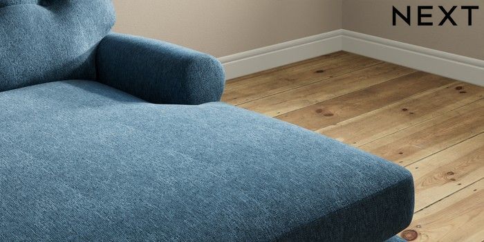 7.2.10 Erin Buttoned Back Deep Relaxed Sit Medium Sofa Chaise - Right Hand Cotswold Chenille Dark Blue High Classic Turned Brass Castor - Mid | Made Click here to use our website with more accessibility support, for example screen readers
