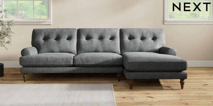 7.2.10 Erin Buttoned Back Deep Relaxed Sit Medium Sofa Chaise - Right Hand Cotswold Chenille Dark Grey High Classic Turned - Mid | Made Click here to use our website with more accessibility support, for example screen readers