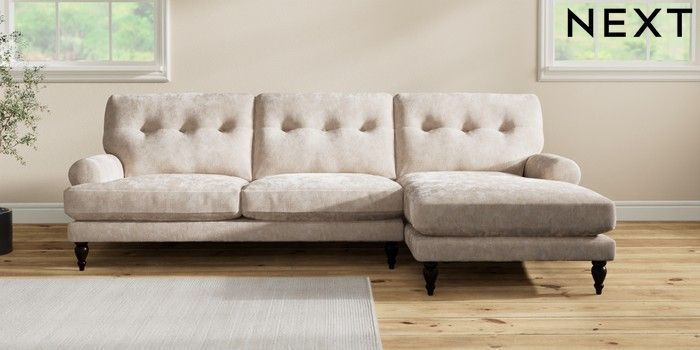 7.2.10 Erin Buttoned Back Deep Relaxed Sit Medium Sofa Chaise - Right Hand Distressed Velour Mid Natural High Classic Turned - Dark | Made Click here to use our website with more accessibility support, for example screen readers