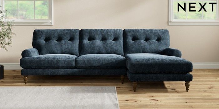 7.2.10 Erin Buttoned Back Deep Relaxed Sit Medium Sofa Chaise - Right Hand Distressed Velour Midnight Blue High Classic Turned - Mid | Made Click here to use our website with more accessibility support, for example screen readers
