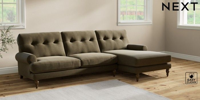 7.2.10 Erin Buttoned Back Deep Relaxed Sit Medium Sofa Chaise - Right Hand Fine Chenille Easy Clean Dark Moss Green High Classic Turned - Mid | Made Click here to use our website with more accessibility support, for example screen readers