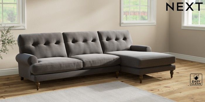 7.2.10 Erin Buttoned Back Deep Relaxed Sit Medium Sofa Chaise - Right Hand Fine Chenille Easy Clean Dark Smoke Grey High Classic Turned - Mid | Made Click here to use our website with more accessibility support, for example screen readers