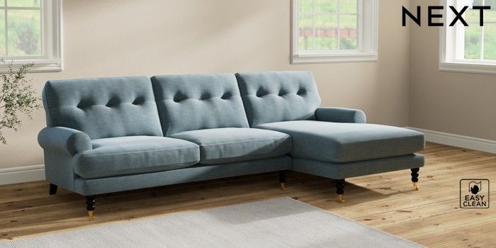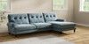 7.2.10 Erin Buttoned Back Deep Relaxed Sit Medium Sofa Chaise - Right Hand Fine Chenille Easy Clean Mid Blue High Classic Turned Brass Castor - Dark | Made Click here to use our website with more accessibility support, for example screen readers
