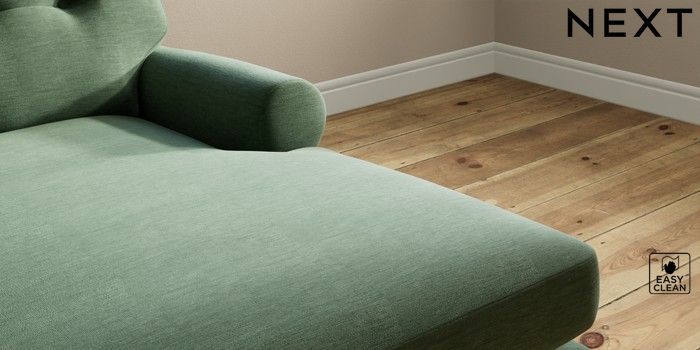 7.2.10 Erin Buttoned Back Deep Relaxed Sit Medium Sofa Chaise - Right Hand Fine Chenille Easy Clean Mid Khaki Green High Classic Turned Brass Castor - Light | Made Click here to use our website with more accessibility support, for example screen readers