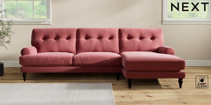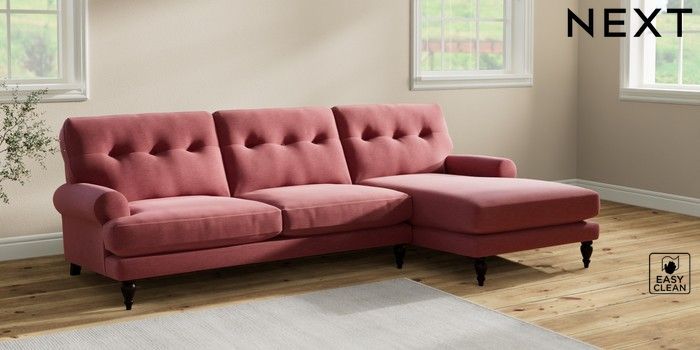 7.2.10 Erin Buttoned Back Deep Relaxed Sit Medium Sofa Chaise - Right Hand Fine Chenille Easy Clean Mid Pink High Classic Turned - Dark | Made Click here to use our website with more accessibility support, for example screen readers