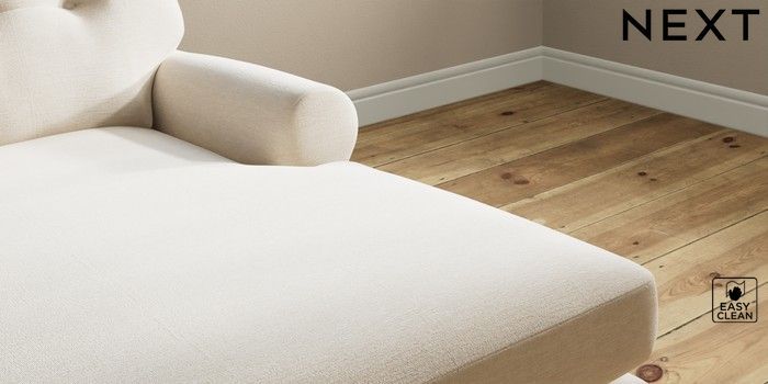 7.2.10 Erin Buttoned Back Deep Relaxed Sit Medium Sofa Chaise - Right Hand Fine Chenille Easy Clean Oyster High Classic Turned Chrome Castor - Mid | Made Click here to use our website with more accessibility support, for example screen readers