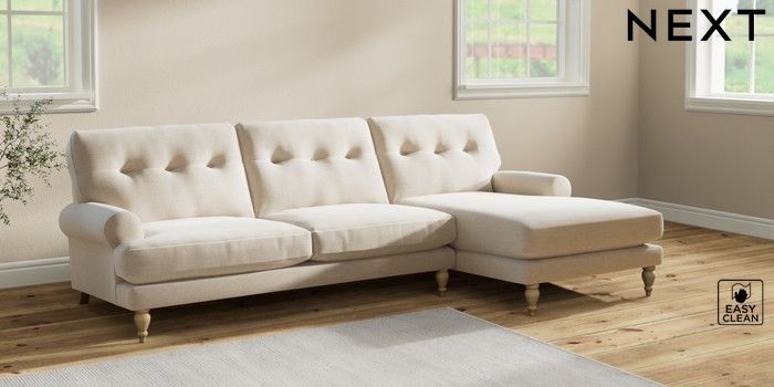 7.2.10 Erin Buttoned Back Deep Relaxed Sit Medium Sofa Chaise - Right Hand Fine Chenille Easy Clean Oyster High Classic Turned - Light | Made Click here to use our website with more accessibility support, for example screen readers
