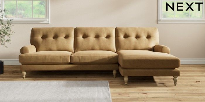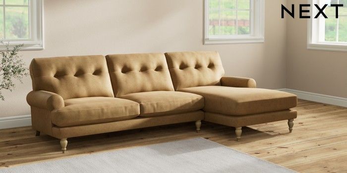 7.2.10 Erin Buttoned Back Deep Relaxed Sit Medium Sofa Chaise - Right Hand Luxe Chenille Honey Yellow High Classic Turned - Light | Made Click here to use our website with more accessibility support, for example screen readers