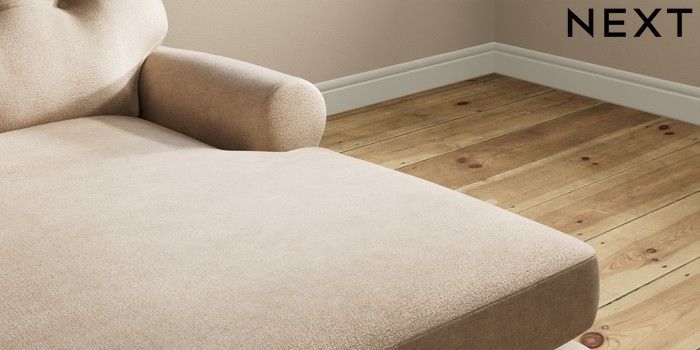 7.2.10 Erin Buttoned Back Deep Relaxed Sit Medium Sofa Chaise - Right Hand Luxe Chenille Mid Camel Beige High Classic Turned Brass Castor - Mid | Made Click here to use our website with more accessibility support, for example screen readers