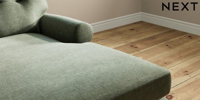 7.2.10 Erin Buttoned Back Deep Relaxed Sit Medium Sofa Chaise - Right Hand Luxe Chenille Mid Green High Classic Turned Chrome Castor - Mid | Made Click here to use our website with more accessibility support, for example screen readers