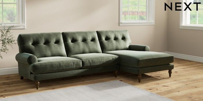7.2.10 Erin Buttoned Back Deep Relaxed Sit Medium Sofa Chaise - Right Hand Luxe Chenille Mid Green High Classic Turned - Mid | Made Click here to use our website with more accessibility support, for example screen readers