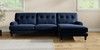 7.2.10 Erin Buttoned Back Deep Relaxed Sit Medium Sofa Chaise - Right Hand Luxe Chenille Navy Blue High Classic Turned Chrome Castor - Dark | Made Click here to use our website with more accessibility support, for example screen readers