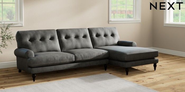 7.2.10 Erin Buttoned Back Deep Relaxed Sit Medium Sofa Chaise - Right Hand Monza Faux Leather Easy Clean Dark Grey High Classic Turned - Dark | Made Click here to use our website with more accessibility support, for example screen readers