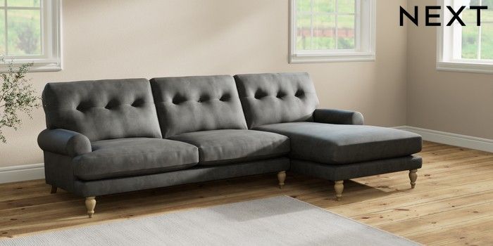 7.2.10 Erin Buttoned Back Deep Relaxed Sit Medium Sofa Chaise - Right Hand Monza Faux Leather Easy Clean Dark Grey High Classic Turned - Light | Made Click here to use our website with more accessibility support, for example screen readers