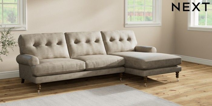 Add charm to your living space with the Erin Button Back Sofa. Its elegant scroll arms and classic button-back cushions create a timeless look. You'll love its "Relaxed Sit" cushions, specially designed for ultimate comfort. These cushions are made with clever foam and fibre, giving you a wonderfully soft, plump feel. To keep them looking their best, simply plump and turn them regularly. Plus, you can make the Erin your own by choosing from a huge range of coloured fabrics.