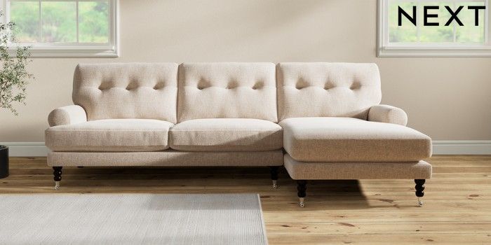 7.2.10 Erin Buttoned Back Deep Relaxed Sit Medium Sofa Chaise - Right Hand Multi Weave Mid Natural High Classic Turned Chrome Castor - Dark | Made Click here to use our website with more accessibility support, for example screen readers