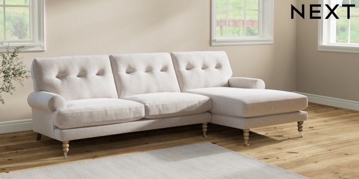 Add charm to your living space with the Erin Button Back Sofa. Its elegant scroll arms and classic button-back cushions create a timeless look. You'll love its "Relaxed Sit" cushions, specially designed for ultimate comfort. These cushions are made with clever foam and fibre, giving you a wonderfully soft, plump feel. To keep them looking their best, simply plump and turn them regularly. Plus, you can make the Erin your own by choosing from a huge range of coloured fabrics.