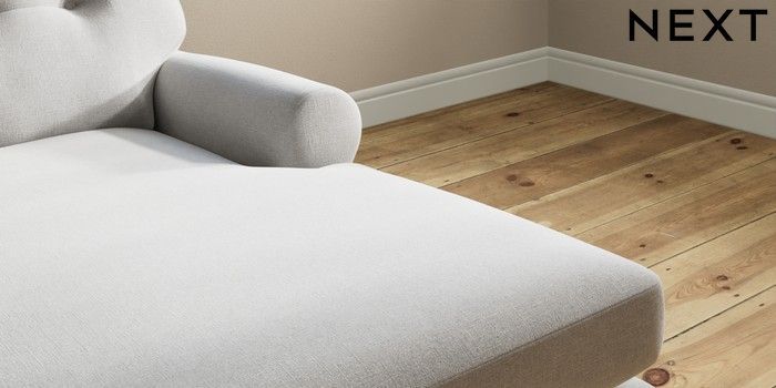 7.2.10 Erin Buttoned Back Deep Relaxed Sit Medium Sofa Chaise - Right Hand Natural Mix Light Grey High Classic Turned Chrome Castor - Mid | Made Click here to use our website with more accessibility support, for example screen readers