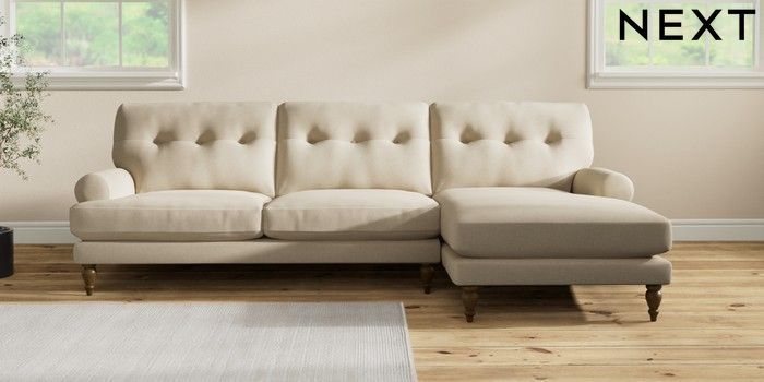 7.2.10 Erin Buttoned Back Deep Relaxed Sit Medium Sofa Chaise - Right Hand Natural Mix Light Natural High Classic Turned - Mid | Made Click here to use our website with more accessibility support, for example screen readers