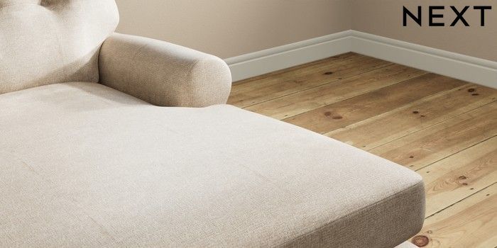 7.2.10 Erin Buttoned Back Deep Relaxed Sit Medium Sofa Chaise - Right Hand Plush Chenille Light Natural High Classic Turned Brass Castor - Light | Made Click here to use our website with more accessibility support, for example screen readers