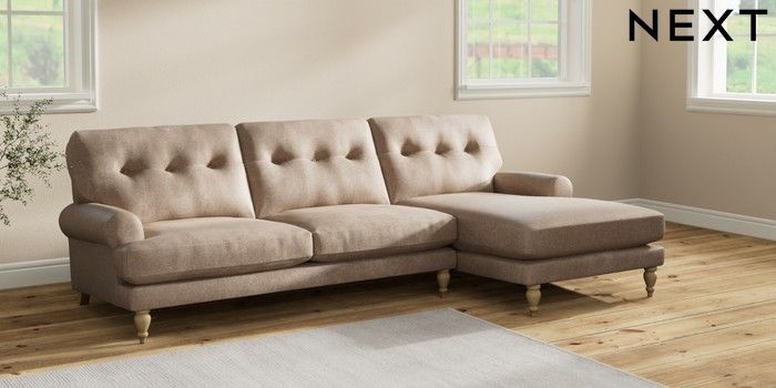 7.2.10 Erin Buttoned Back Deep Relaxed Sit Medium Sofa Chaise - Right Hand Plush Chenille Mid Natural High Classic Turned - Light | Made Click here to use our website with more accessibility support, for example screen readers