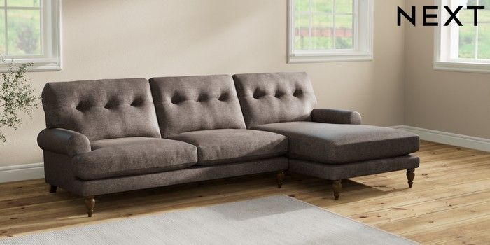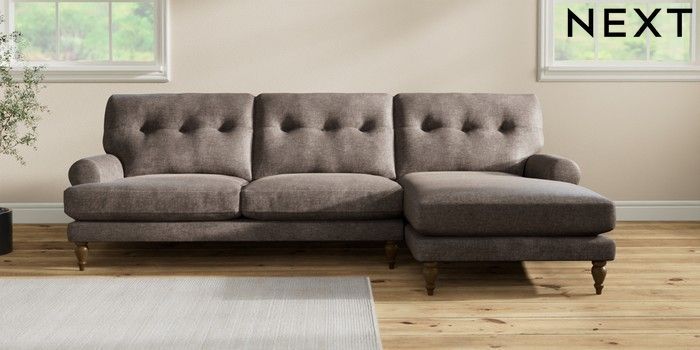 7.2.10 Erin Buttoned Back Deep Relaxed Sit Medium Sofa Chaise - Right Hand Plush Chenille Mink Brown High Classic Turned - Mid | Made Click here to use our website with more accessibility support, for example screen readers