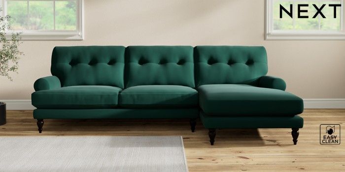 7.2.10 Erin Buttoned Back Deep Relaxed Sit Medium Sofa Chaise - Right Hand Plush Velvet Easy Clean Bottle Green High Classic Turned - Dark | Made Click here to use our website with more accessibility support, for example screen readers