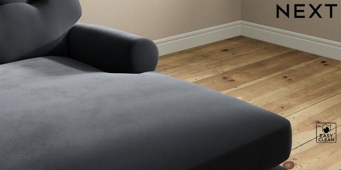 7.2.10 Erin Buttoned Back Deep Relaxed Sit Medium Sofa Chaise - Right Hand Plush Velvet Easy Clean Charcoal Grey High Classic Turned Chrome Castor - Mid | Made Click here to use our website with more accessibility support, for example screen readers