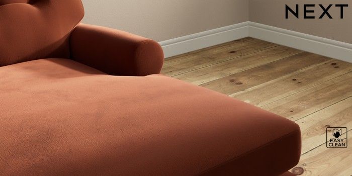 7.2.10 Erin Buttoned Back Deep Relaxed Sit Medium Sofa Chaise - Right Hand Plush Velvet Easy Clean Ginger Orange High Classic Turned Chrome Castor - Dark | Made Click here to use our website with more accessibility support, for example screen readers