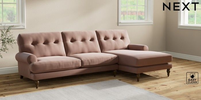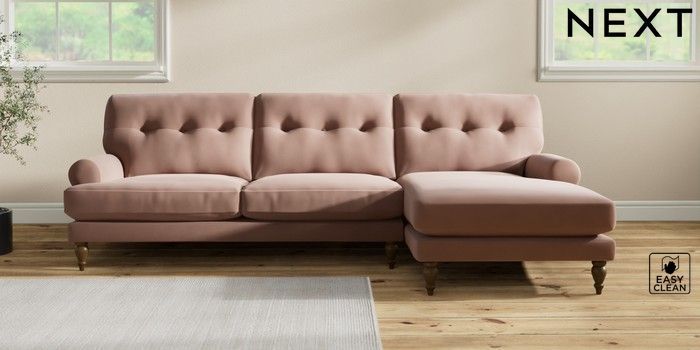 7.2.10 Erin Buttoned Back Deep Relaxed Sit Medium Sofa Chaise - Right Hand Plush Velvet Easy Clean Mid Natural High Classic Turned - Mid | Made Click here to use our website with more accessibility support, for example screen readers