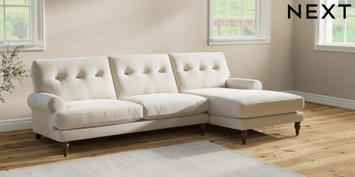 7.2.10 Erin Buttoned Back Deep Relaxed Sit Medium Sofa Chaise - Right Hand Relaxed Linen Look Oyster High Classic Turned - Mid | Made Click here to use our website with more accessibility support, for example screen readers