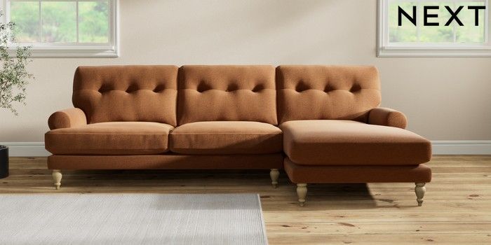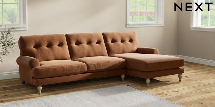 7.2.10 Erin Buttoned Back Deep Relaxed Sit Medium Sofa Chaise - Right Hand Ripple Chenille Mid Rust Brown High Classic Turned - Light | Made Click here to use our website with more accessibility support, for example screen readers