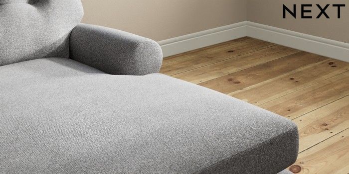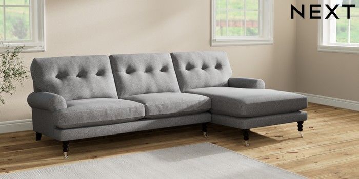 7.2.10 Erin Buttoned Back Deep Relaxed Sit Medium Sofa Chaise - Right Hand Studio Chenille Mid Grey High Classic Turned Chrome Castor - Dark | Made Click here to use our website with more accessibility support, for example screen readers