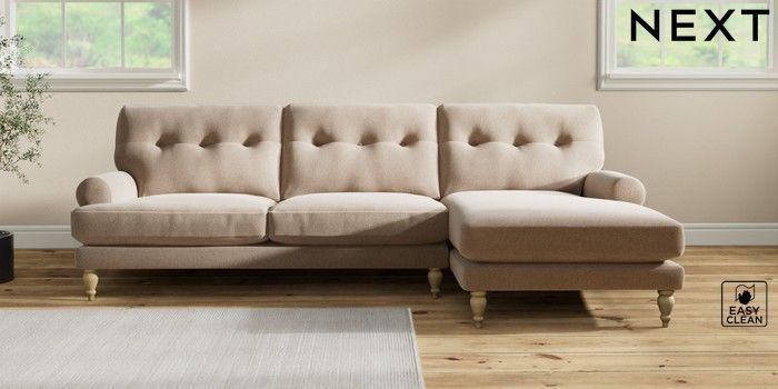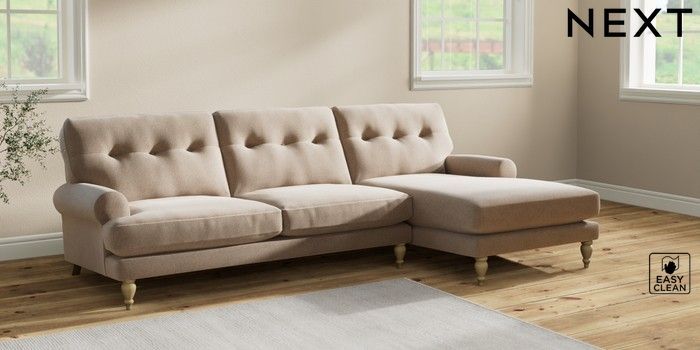 7.2.10 Erin Buttoned Back Deep Relaxed Sit Medium Sofa Chaise - Right Hand Tweedy Blend Easy Clean Light Dove Natural High Classic Turned - Light | Made Click here to use our website with more accessibility support, for example screen readers