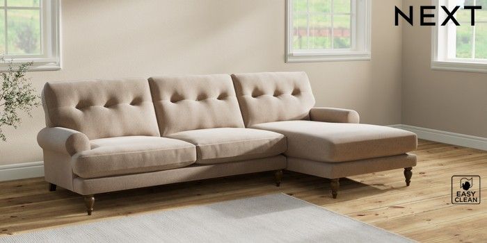7.2.10 Erin Buttoned Back Deep Relaxed Sit Medium Sofa Chaise - Right Hand Tweedy Blend Easy Clean Light Dove Natural High Classic Turned - Mid | Made Click here to use our website with more accessibility support, for example screen readers