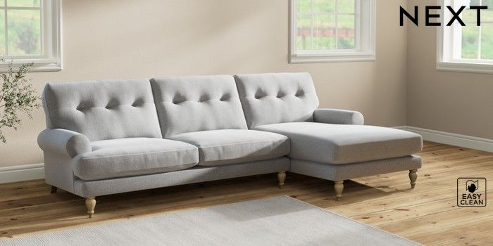 7.2.10 Erin Buttoned Back Deep Relaxed Sit Medium Sofa Chaise - Right Hand Tweedy Blend Easy Clean Light Silver Grey High Classic Turned - Light | Made Click here to use our website with more accessibility support, for example screen readers