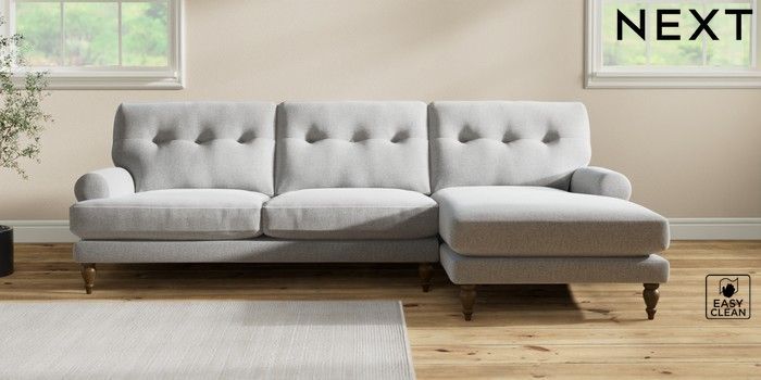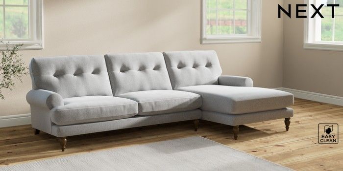 7.2.10 Erin Buttoned Back Deep Relaxed Sit Medium Sofa Chaise - Right Hand Tweedy Blend Easy Clean Light Silver Grey High Classic Turned - Mid | Made Click here to use our website with more accessibility support, for example screen readers