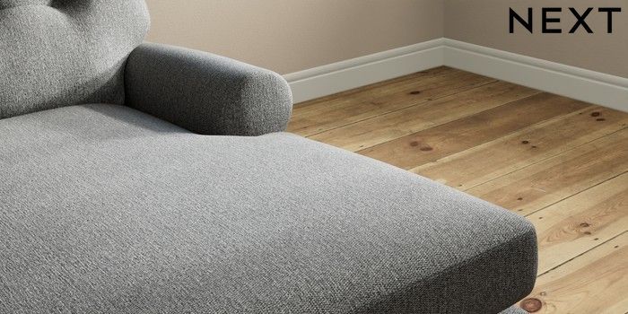 7.2.10 Erin Buttoned Back Deep Relaxed Sit Medium Sofa Chaise - Right Hand Tweedy Chenille Dark Grey High Classic Turned Brass Castor - Mid | Made Click here to use our website with more accessibility support, for example screen readers