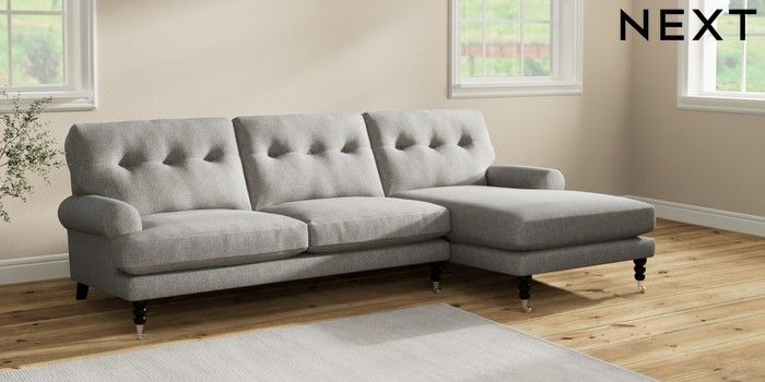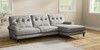 7.2.10 Erin Buttoned Back Deep Relaxed Sit Medium Sofa Chaise - Right Hand Tweedy Chenille Mid Grey High Classic Turned Chrome Castor - Dark | Made Click here to use our website with more accessibility support, for example screen readers