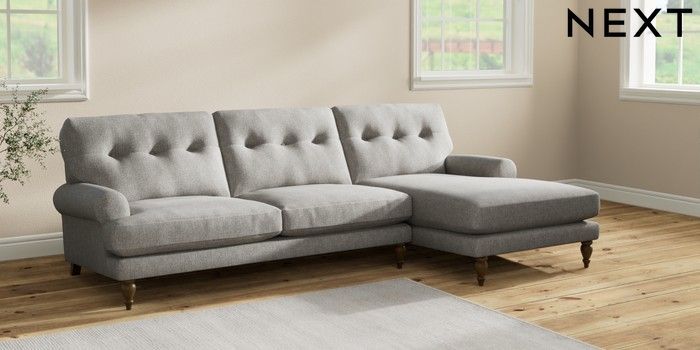 7.2.10 Erin Buttoned Back Deep Relaxed Sit Medium Sofa Chaise - Right Hand Tweedy Chenille Mid Grey High Classic Turned - Mid | Made Click here to use our website with more accessibility support, for example screen readers