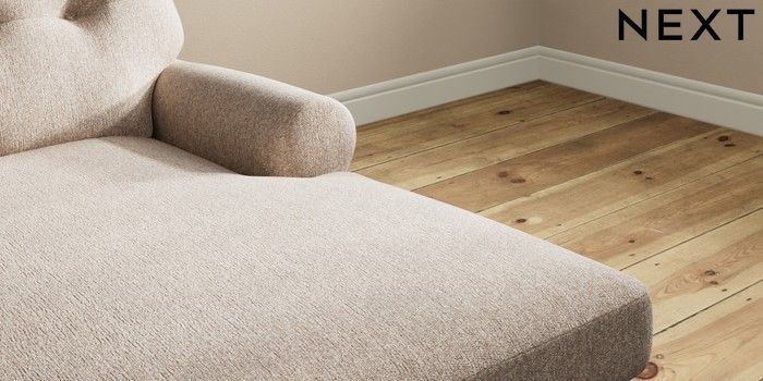 7.2.10 Erin Buttoned Back Deep Relaxed Sit Medium Sofa Chaise - Right Hand Tweedy Chenille Mid Natural High Classic Turned - Mid | Made Click here to use our website with more accessibility support, for example screen readers