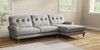 7.2.10 Erin Buttoned Back Deep Relaxed Sit Medium Sofa Chaise - Right Hand Woven Chenille Easy Clean Light Grey High Classic Turned Chrome Castor - Mid | Made Click here to use our website with more accessibility support, for example screen readers